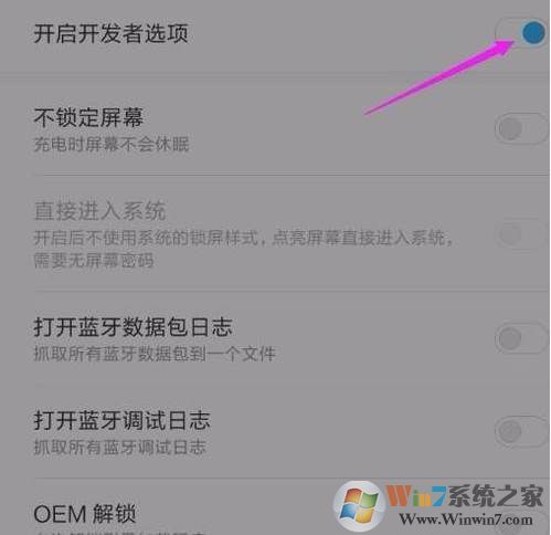 5.之后我們就會看到在設(shè)置里面多出了一個開發(fā)者選項的按鈕,我們把該選項打開;