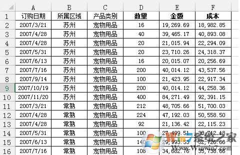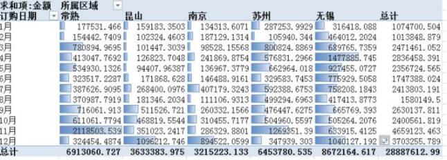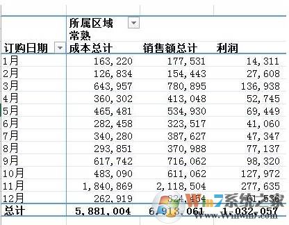 有非常多的數(shù)據(jù),比如是1220行,6列。我們需要匯總各個區(qū)域,每個月的銷售額與成本總計,同時算出利潤。即要做出這樣一張表。