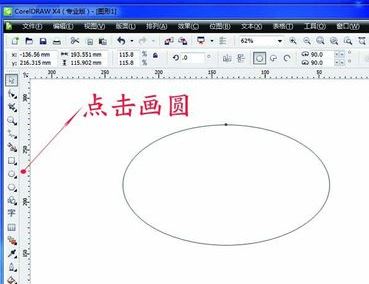 1、.在cdr左邊一欄里,點(diǎn)擊第八個圓,畫一個橢圓,按住CTRL鍵+鼠標(biāo)左鍵,拖動鼠標(biāo)來調(diào)整圓圈大小,這樣畫出的圓圈是正圓;