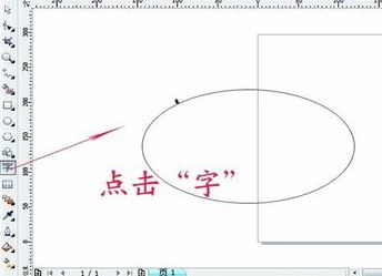 2、在左邊一欄里,點(diǎn)擊“字”這個符號,然后在所畫的橢圓上點(diǎn)擊一下,如圖:
