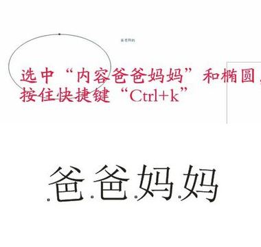 4、弧形字體做好了選中內(nèi)容和橢圓,按住快捷鍵“Ctrl+k"打撒,最后選中橢圓,按住快捷鍵”delete"即可刪除多余的圓;