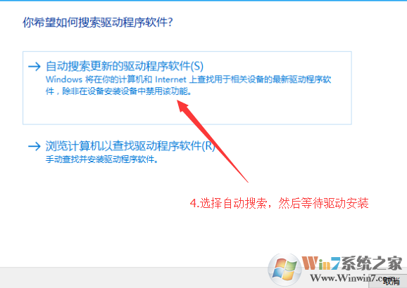 3、然后再點(diǎn)擊自動(dòng)搜索更新的驅(qū)動(dòng)程序軟件;