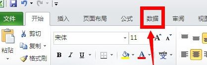 2、接著在excel表格主菜單中,選擇并點(diǎn)擊“數(shù)據(jù)”功能菜單,如圖: