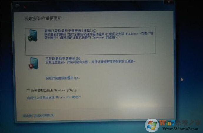 6、來到獲取安裝重要更新,選擇第二項,不獲取最新更新安裝;