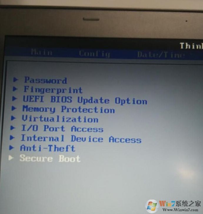 12、把最后一項關(guān)掉,secure boot (安全啟動)用Win7 這個要關(guān)閉,選擇為Disabled;