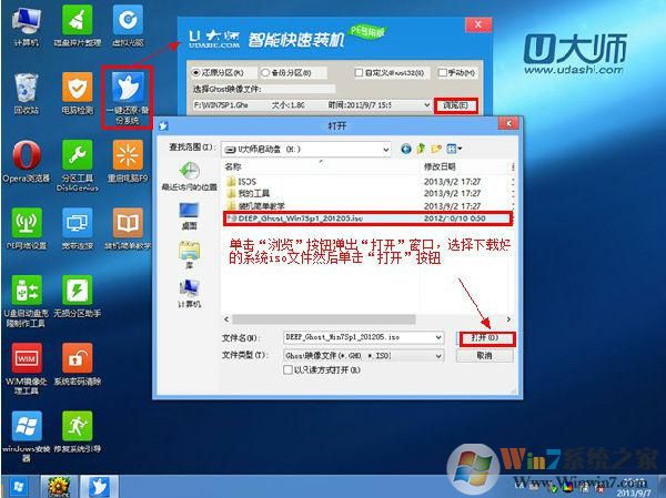 雙擊桌面上“一鍵還原備份系統(tǒng)”圖標(biāo),會(huì)彈出一個(gè)窗口,單擊“瀏覽”按鈕,找到之前已下載好的系統(tǒng)iso或gho文件,然后單擊“打開(kāi)”按鈕即可(注意:若是iso或gho文件是直接放在做好的啟動(dòng)U盤里的話,就不用單擊“瀏覽”按鈕了,軟件會(huì)自動(dòng)選擇U盤里的系統(tǒng)iso或gho文件的)。如圖: