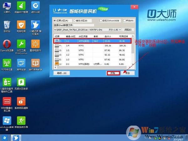 5.選擇需要安裝的系統(tǒng)分區(qū)(這里就以C盤演示),然后單擊“開(kāi)始”按鈕。如圖: