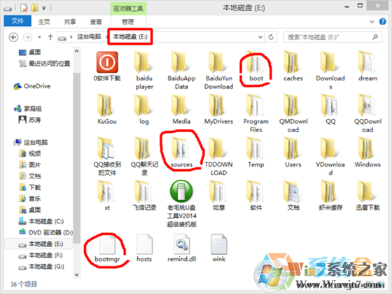 2、將映像解壓到C盤外的某盤符的根目錄,如E盤根目錄;
