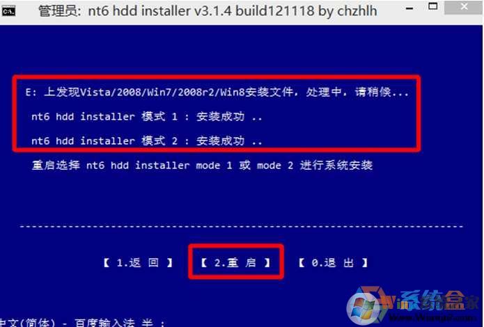 6、提示:安裝成功!擊【重啟】;