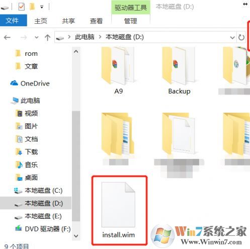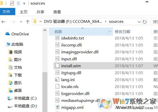 3、將install.wim復制到某個盤符的根目錄下,小編這里放在D盤,拷貝完畢請自行改名,比如改成WIN10x64.wim等等。