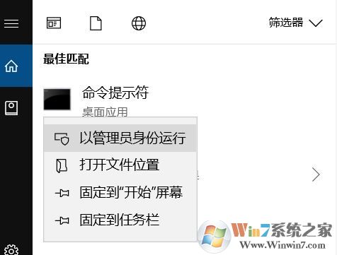 6、復制完畢,點擊開始菜單輸入cmd,這時右鍵單擊“命令提示符”,選擇“以管理員身份運行”,如圖: