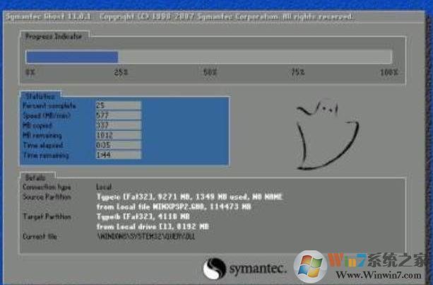 拷貝到100%之后會自動重啟開始安裝,若遇到不會自動重啟的等待看上圖所示界面拷貝完成后手動重啟一下即可!