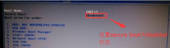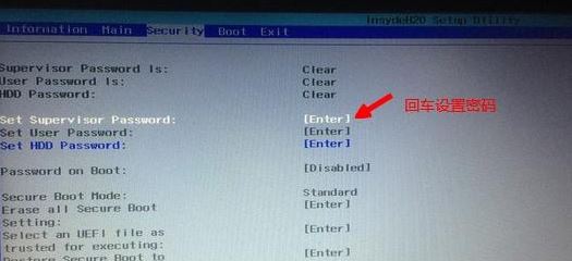 2、關(guān)閉Secure BOOT為disable,設(shè)置為L(zhǎng)egacy時(shí)默認(rèn)關(guān)閉Secure Boot,如果Secure Boot灰色無法設(shè)置,則轉(zhuǎn)到Security,選擇Set Supervisor Password回車設(shè)置密碼,再禁用Secure Boot,如圖:
