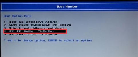 4、插入U(xiǎn)盤啟動(dòng)盤,重啟時(shí)不停的按下f12,打開Boot Manager,選擇USB HDD回車從U盤cncxm.com啟動(dòng),如圖: