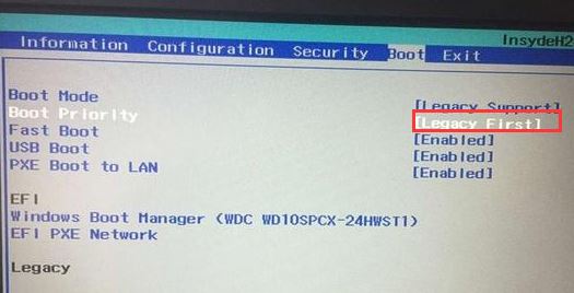 5、再把Boot Priority設(shè)置成Legacy First,按F10彈出窗口選擇yes回車;