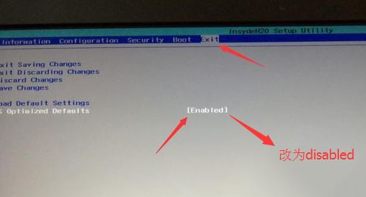 2、轉(zhuǎn)到Exit,把OS Optimized Defaults設(shè)置為Disabled或Other OS;