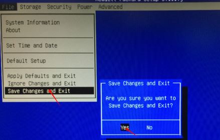 3、然后進入選擇File-- Save Changes and Exit—選擇Yes回車保存退出,如圖: