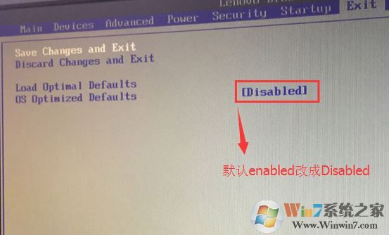 2、轉(zhuǎn)到Exit,把OS Optimized Defaults設(shè)置為Disabled;