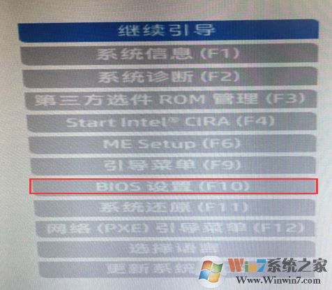 1、開(kāi)機(jī)一直按按ESC,出現(xiàn)以下界面后,再按F10進(jìn)入BIOS,如下圖所示;