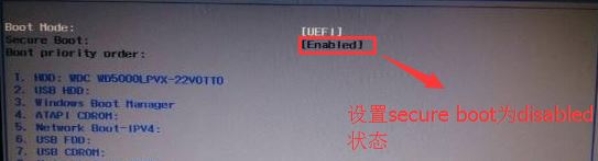 1、開機一直按F2進入BIOS,按F2進入BIOS界面,首先我們要關(guān)閉安全啟動(secure boot選項默認為enabled),切換BOOT項后發(fā)現(xiàn)secure boot灰色不可選狀態(tài),如圖: