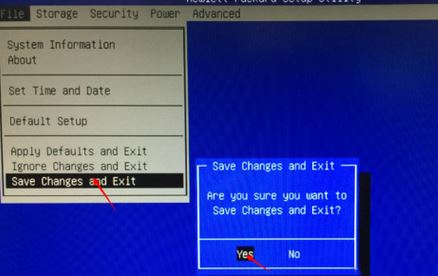 3、然后進(jìn)入選擇File-- Save Changes and Exit—選擇Yes回車保存退出,如圖: