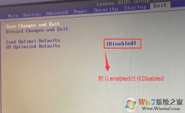 2、轉(zhuǎn)到Exit,把OS Optimized Defaults設(shè)置為Disabled;