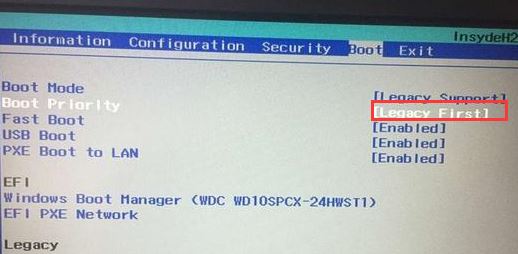 5、再把Boot Priority設(shè)置成Legacy First,按F10彈出窗口選擇yes回車;