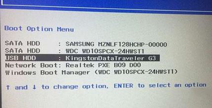 6、插入制作好的U盤啟動(dòng)盤,重啟按F12或FN+F12調(diào)出啟動(dòng)管理對(duì)話框,選擇USB HDD識(shí)別到U盤啟動(dòng)進(jìn)入P