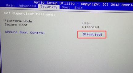 1、重啟筆記本按F2進入BIOS設置,在Security下把Secure Boot Control設置為Disabled,如下圖所示;