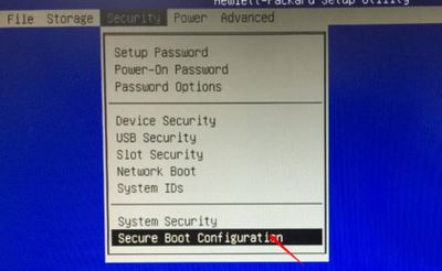 1、開機(jī)一直按F10進(jìn)入BIOS,如果沒反應(yīng)則啟動(dòng)時(shí)按ESC,出現(xiàn)以下界面后,再按F10進(jìn)入BIOS,切換到Security選項(xiàng)--Secure Boot Configuration點(diǎn)擊回車鍵,如果彈出紅色界面,請(qǐng)按F10接受,如圖:
