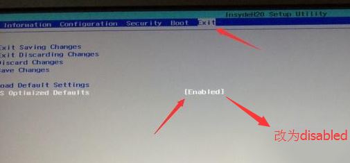 2、轉到Exit,把OS Optimized Defaults設置為Disabled或Other OS;