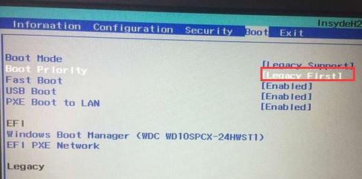 5、再把Boot Priority設置成Legacy First,按F10彈出窗口選擇yes回車;