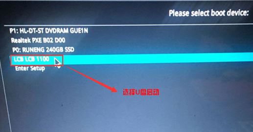 6、插入U(xiǎn)盤(pán)啟動(dòng)盤(pán),重啟按ESC選擇識(shí)別到U盤(pán)啟動(dòng)項(xiàng)