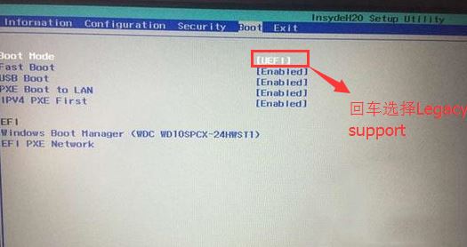 4、切換到Boot,把Boot Mode從UEFI改成Legacy Support;