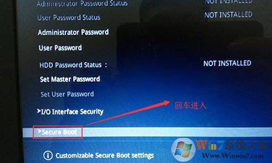 2、當電腦啟動時,立刻按鍵盤F2,你可以進入bios設(shè)置畫面,按→方向鍵移動到Security,選擇Secure Boot,然后回車進入把Secure Boot control選enabled改為disabled關(guān)閉安全啟動,然后按F10保存重啟;