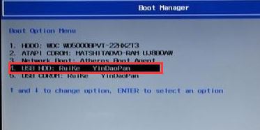 5、插入U(xiǎn)盤啟動(dòng)盤,重啟時(shí)不停的按下f12,打開Boot Manager,選擇USB HDD回車從U盤啟動(dòng)