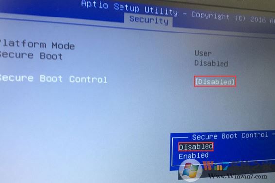 1、重啟筆記本按esc進(jìn)入BIOS設(shè)置,然后按F7進(jìn)入高級(jí)模式,按→方向鍵移動(dòng)到Security,選擇Secure Boot,然后回車進(jìn)入把Secure Boot control選enabled改為disabled關(guān)閉安全啟動(dòng),然后按F10保存重啟,如圖:
