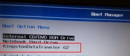 4、插入制作好的U盤啟動(dòng)盤,重啟按ESC再按F9調(diào)出啟動(dòng)管理對(duì)話框,選擇USB HDD識(shí)別到U盤啟動(dòng)進(jìn)入PE,回車,如圖: