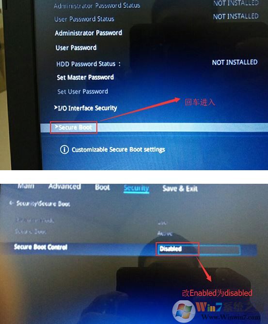 1、重啟筆記本按esc進(jìn)入BIOS設(shè)置,然后按F7進(jìn)入高級(jí)模式,按→方向鍵移動(dòng)到Security,選擇Secure Boot,然后回車進(jìn)入把Secure Boot control選enabled改為disabled關(guān)閉安全啟動(dòng),然后按F10保存重啟,如圖所示: