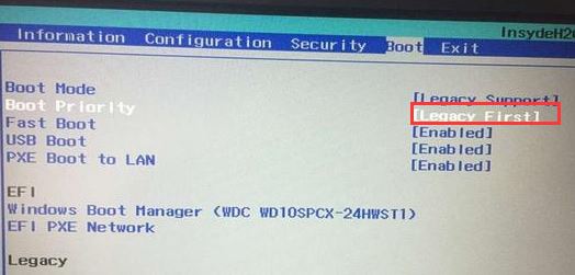 5、再把Boot Priority設(shè)置成Legacy First,按F10彈出窗口選擇yes回車;