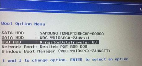 4、插入制作好的U盤啟動(dòng)盤,重啟按F12或FN+F12調(diào)出啟動(dòng)管理對(duì)話框,選擇USB HDD識(shí)別到U盤啟動(dòng)進(jìn)入PE,回車;