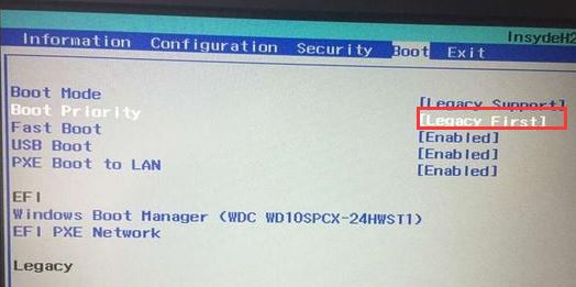 5、再把Boot Priority設(shè)置成Legacy First,按F10彈出窗口選擇yes回車;