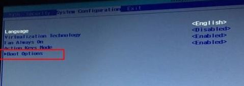 2、移動(dòng)鍵盤右鍵頭到System Configuration下,選擇Boot Options,按回車鍵進(jìn)入設(shè)置;