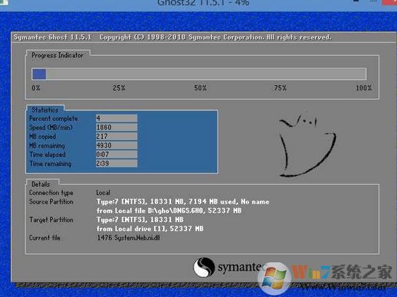 6、GHOST恢復(fù)系統(tǒng)到C盤中。