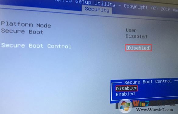 1、重啟筆記本按esc進(jìn)入BIOS設(shè)置,然后按F7進(jìn)入高級模式,按→方向鍵移動到Security,選擇Secure Boot,然后回車進(jìn)入把Secure Boot control選enabled改為disabled關(guān)閉安全啟動,然后按F10保存重啟;