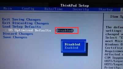 3、在Restart下,選擇OS Optimized Defaults回車,改成Disabled或Other OS,接著選擇Load Setup Defaults回車進行加載,然后按F10保存設置。
