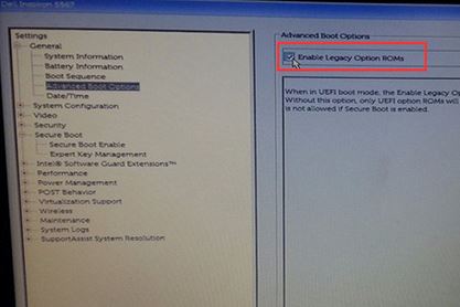 2、切換到Advanced Boot Options將右邊的Enable legacy option roms選項(xiàng)打勾,如下圖所示;