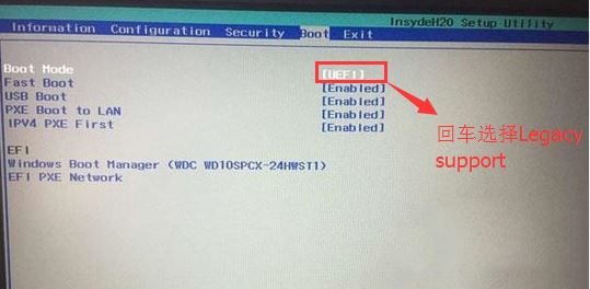 4、切換到Boot,把Boot Mode從UEFI改成Legacy Support;