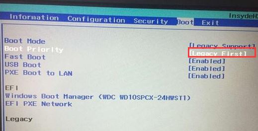 5、再把Boot Priority設(shè)置成Legacy First,按F10彈出窗口選擇yes回車;