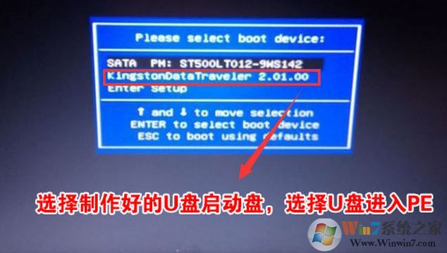 6、保存后電腦會(huì)自動(dòng)重啟,插入制作好的U盤(pán)啟動(dòng)盤(pán),重啟按F10選擇識(shí)別到U盤(pán)啟動(dòng)項(xiàng)回車(chē)進(jìn)入PE;